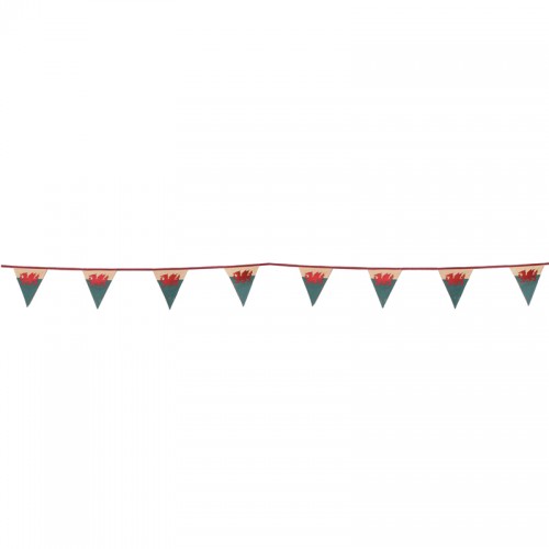 WA101D-TRADITIONAL BUNTING-WELSH DRAGON-RUSTIC DARK RED, GREEN AND TEA-158X9X8.25INCHES/400X23x21CMS-Y Ddraig Goch-The Red Dragon-Patchwork, Embroidered, Total Nine Flags, Double Lined With Strong Fabric Tie-Heavy Duty Duck Cotton Fabric
